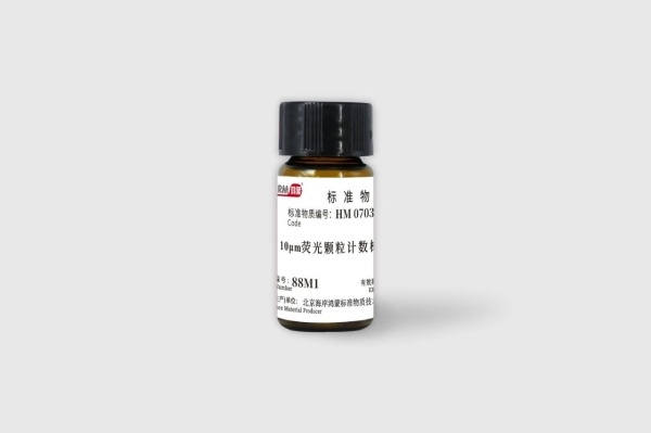 01 产品名称10微米荧光颗粒计数标准物质02 产品编号HM07030303 应用场景 可应用在荧光计数领域04 产品信息本产品由交联聚苯乙烯染色洗脱制备而成,可应用在荧光计数领域。荧光微球悬浮于纯净水中,采用静态图像法和光阻法联合计数;通过荧光显微镜验证颗粒发光效率,分光光度法测量颗粒的激发波长和